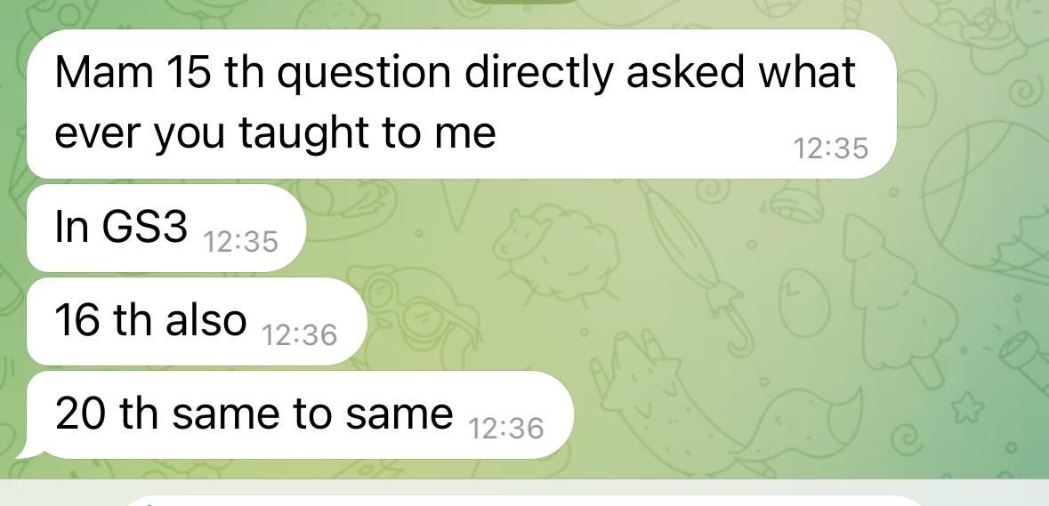 In GS3, the 15th, 16th and even the 20th questions were exactly what she had taught. The alignment was incredible.