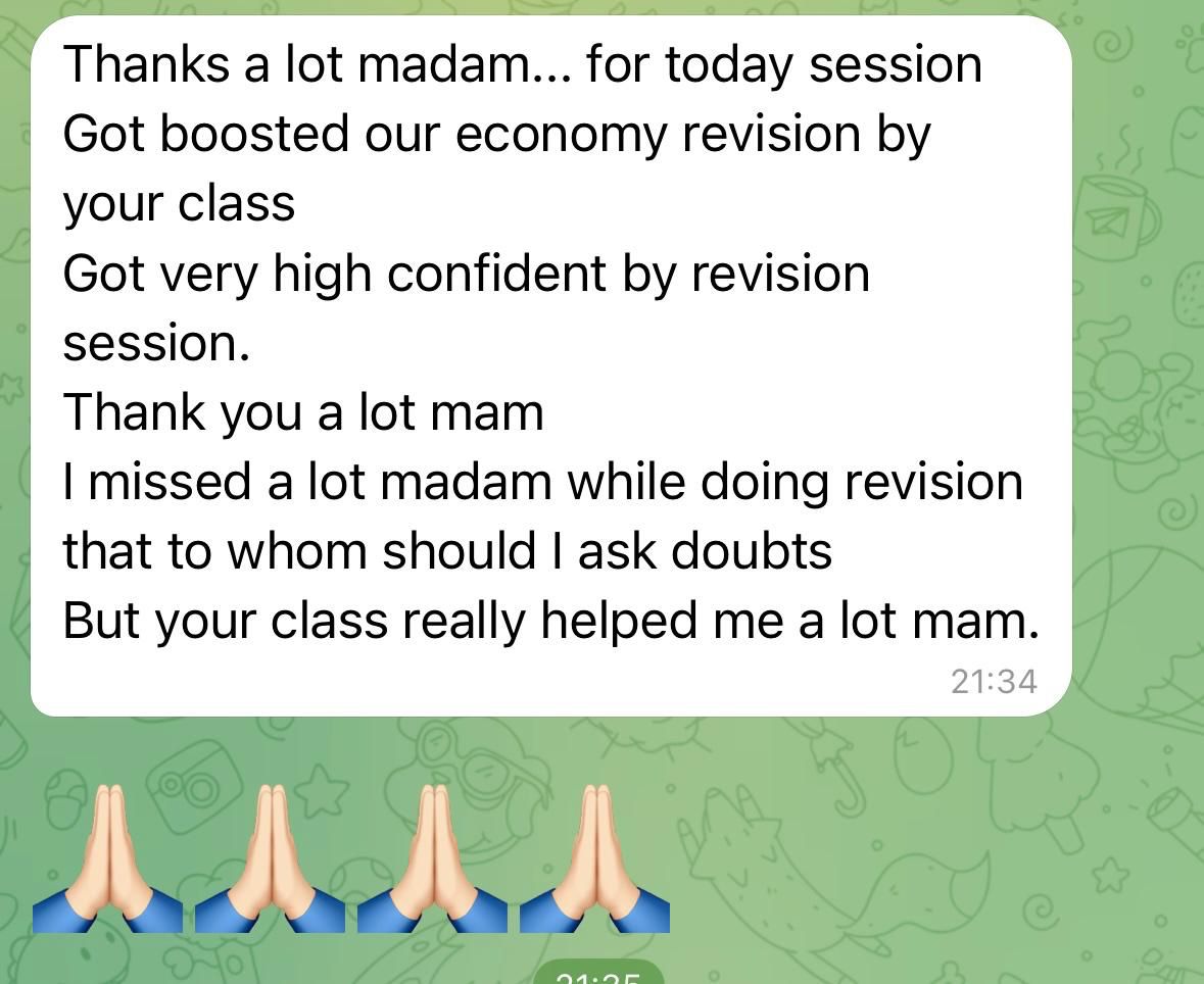 Economics finally started making sense. Nanki ma'am's clarity removed my fear of the subject completely.